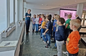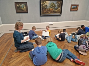 „TIERISCH BESTE FREUNDE“ hieß es für die Kinder der Klassen 2.1 A und 2.2 B der Schulanfangsphase beim Besuch der Gemäldegalerie. Nach einer spannenden Anreise durch unser Berlin und einer kurzer Einführung in der Galerie ging es los. Frau Bellmann leitete und begleitete uns durch die Galerie und durch die kreativen Tätigkeiten. Wir entdeckten auf den mehrere hundert Jahre alten Bildern die verschiedensten Tiere. Einige waren gut zu sehen und wieder andere Tiere waren sehr versteckt. Unsere sehr aufmerksamen Kinder entdeckten viele spannende Dinge auf den Bildern. Schon in der Galerie versuchten sich unsere kleinen Künstler selbst am Zeichnen von verschiedenen Tieren. Anschließend ging es zu einem Workshop. Hier wurden aus Bildhauerwachs die verschiedensten Vierbeiner geformt. Frau Bellmann gab uns viele tolle Tipps für unser künstlerisches Tun. Es war ein wundervolles Erlebnis, das uns noch lange in Erinnerung bleiben wird.