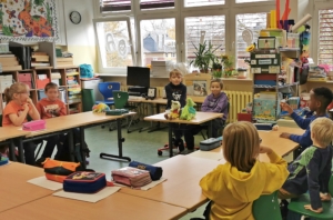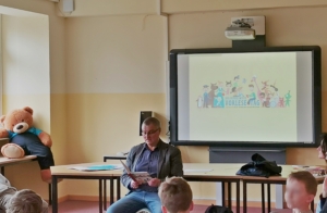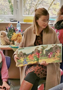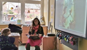 Aus der Klasse 4b übergaben Lennox und Lucas der 2. Klasse mit dem Buch „Die Olchis“ ein wundervolles Vorlesegeschenk. Vladi und Kiara aus der Klasse 6b lasen ebenfalls in einer 2. Klasse vor.