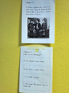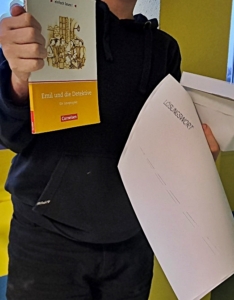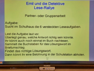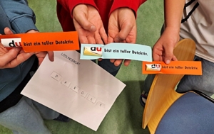 In dieser Woche lösten die Schülerinnen und Schüler der 5. Klasse im Rahmen des Deutschunterrichtes ein Rätsel. Die Suche nach Buchstaben führte sie durch das gesamte Schulhaus. Sechs Buchstaben galt es zu finden und in die richtige Reihenfolge zu bringen. Die Schülerinnen und Schüler arbeiten in kleinen Gruppen zusammen und bewiesen ihr Können bei der Spurensicherung. Bei erfolgreicher Suche hieß es am Ende: „Parole Emil“.